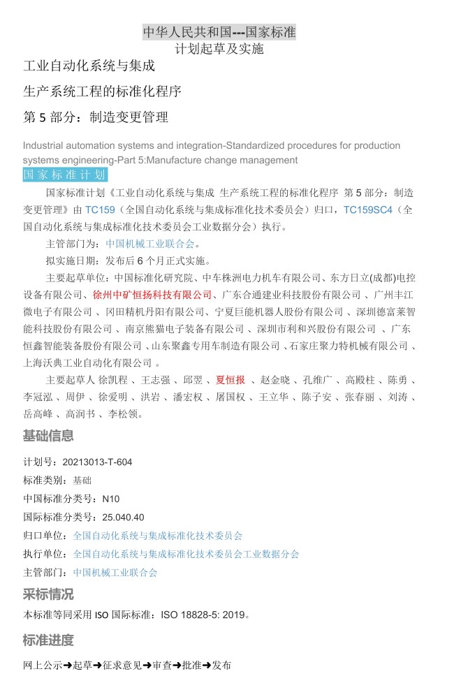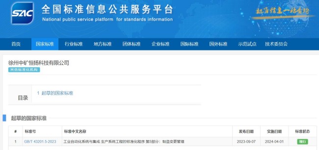 中礦恒揚公司參與國家標準制定